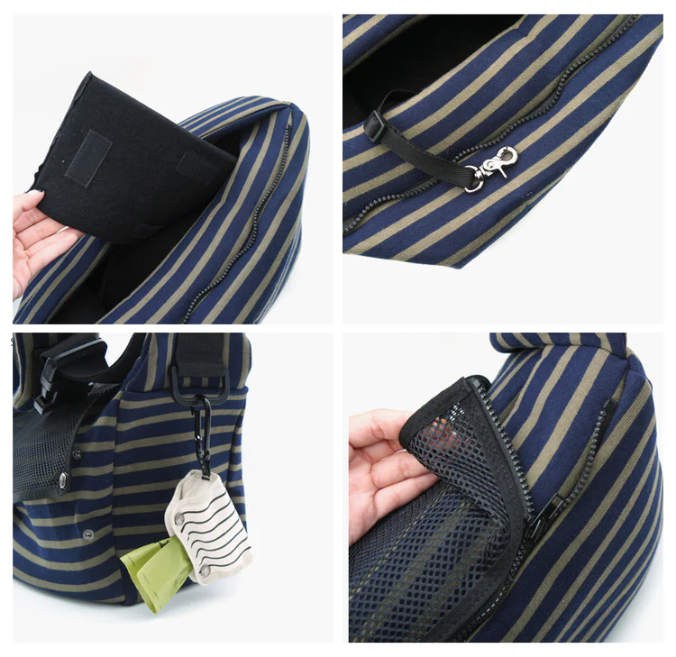 The BETTERS Sling Bag is a soft, easy option for carrying your canine. Made to be super comfortable with a soft, padded, extra-wide strap, this easy-wearing bag also features an adjustable snap-open buckle to ensure the perfect fit. A sleek and functional side pocket is perfect for storing all of your human + hound accessories, and the detachlable mesh cover is ideal for the moments when you need to keep your canine covered up.
