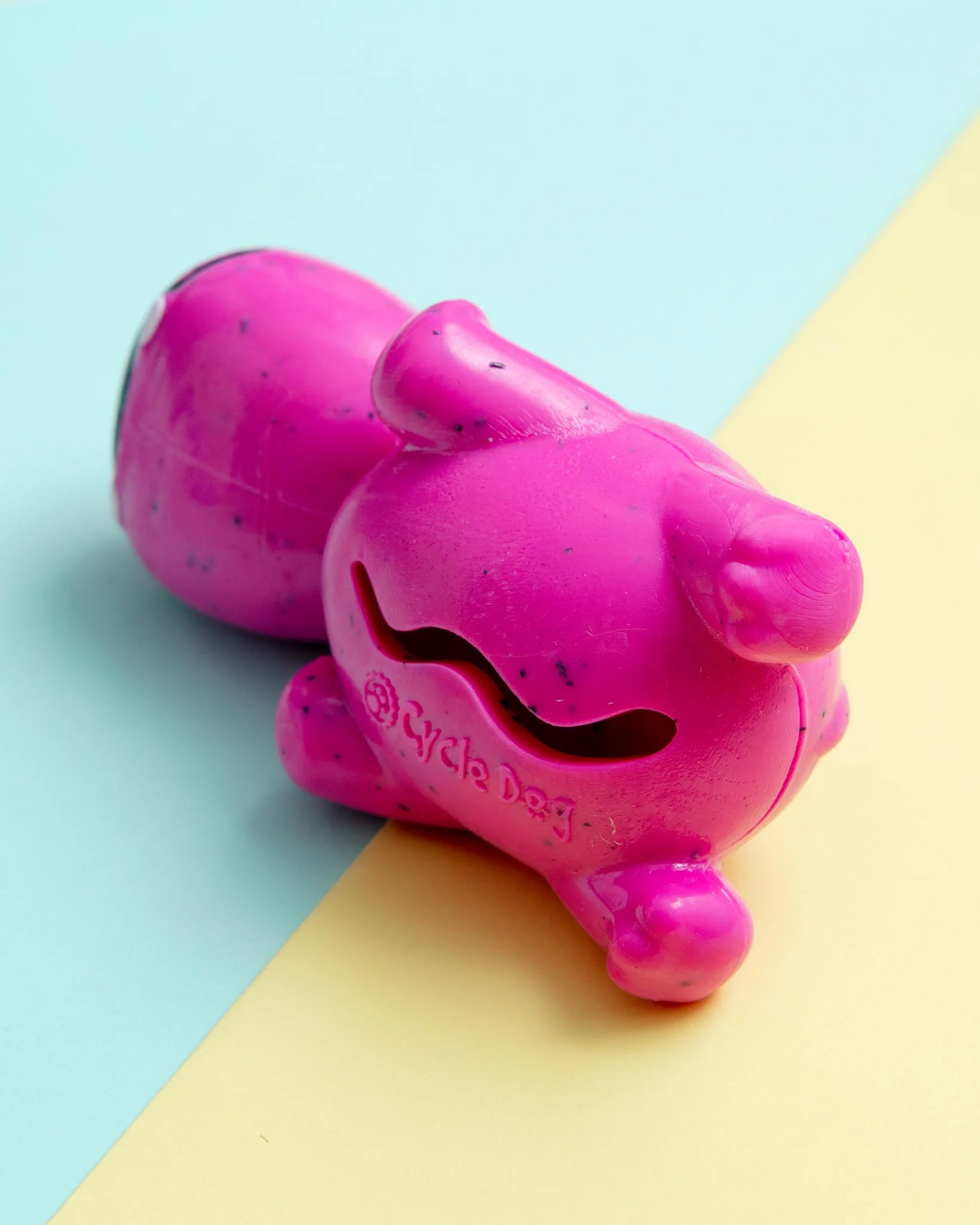 CYCLE DOG's 3-Play Hippo is a superfloat water toy that floats above the water surface. It features a treat hiding belly and internal squeaker which is molded for extra durability. Made Of Ecolast Post-consumer Recycled Material.