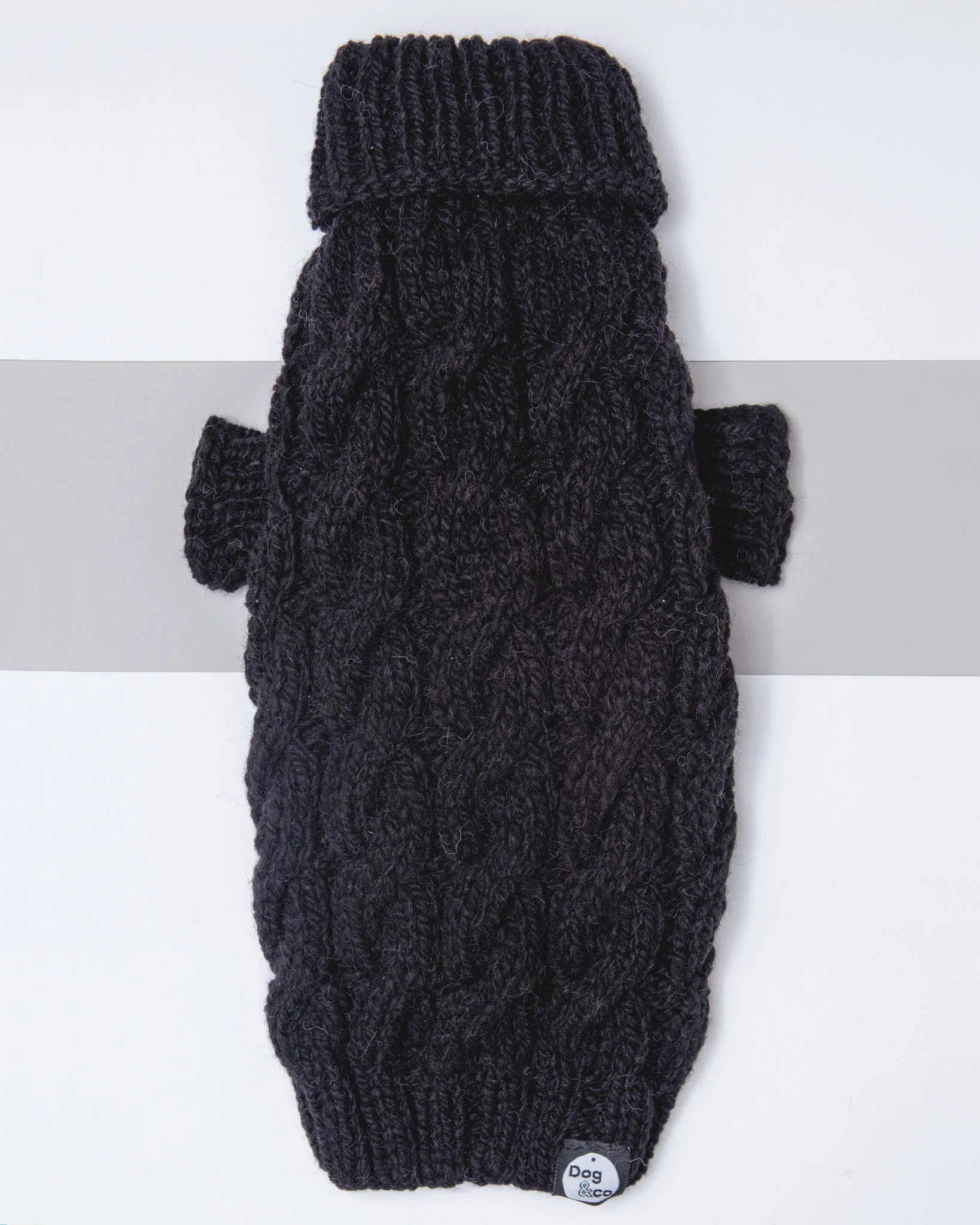 A chunky cable knit design softened for easy everyday wear in 100% natural Alpaca wool. A fold-down Roll Neck add extra warmth for windy winter days, and ribbed knit sleeves held hold body heat in to keep your pup toasty all season long.
