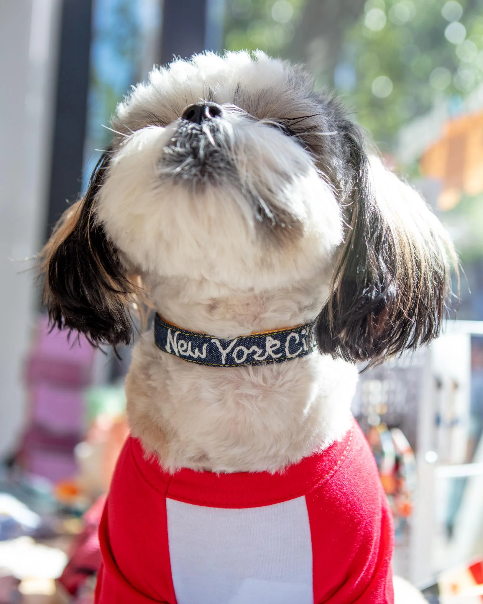 Hand Embroidered "New York City" Dog Collar in Dark Denim (Made in the USA)
