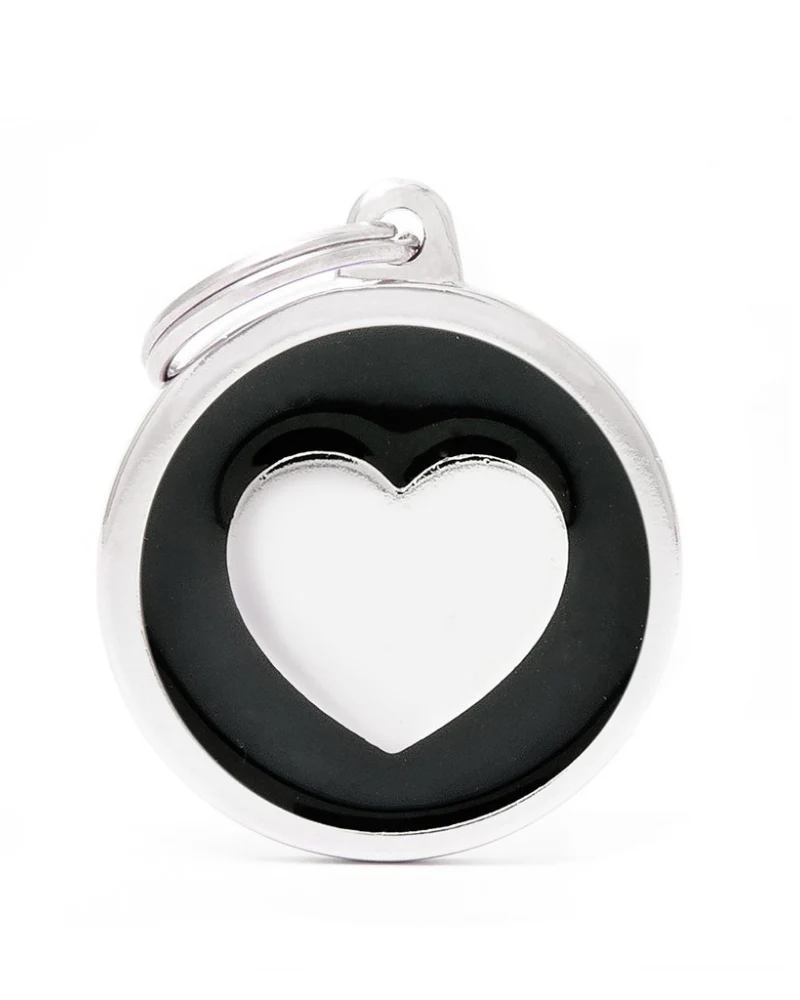 Black & White Chic Circle Heart Pet ID Tag