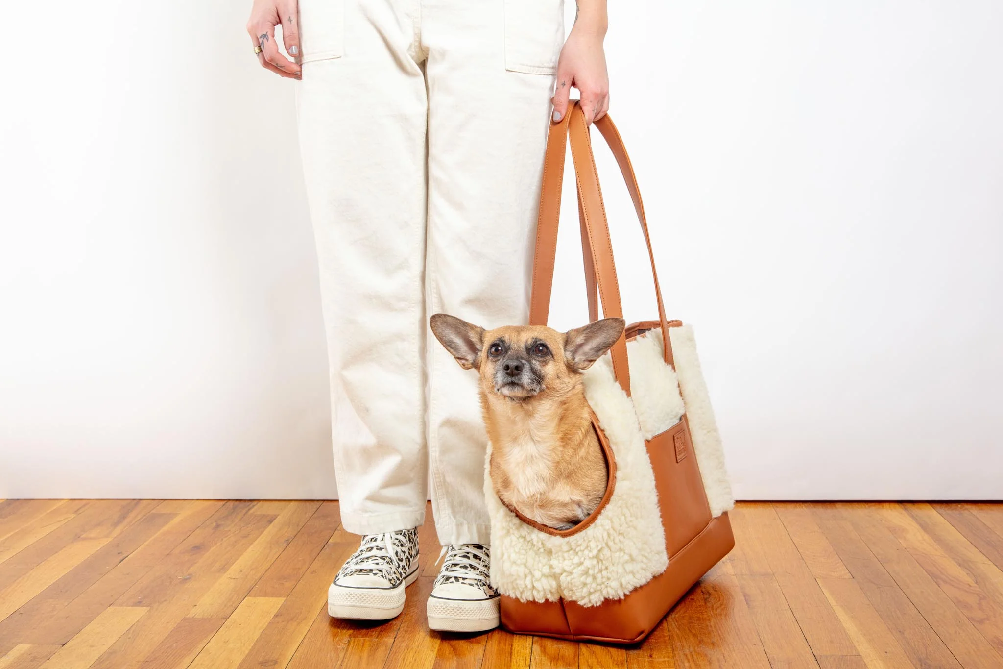 Tan Leather & Cream Shearling Luxe Dog Carrier (Dog & Co. Exclusive) (CLEARANCE)