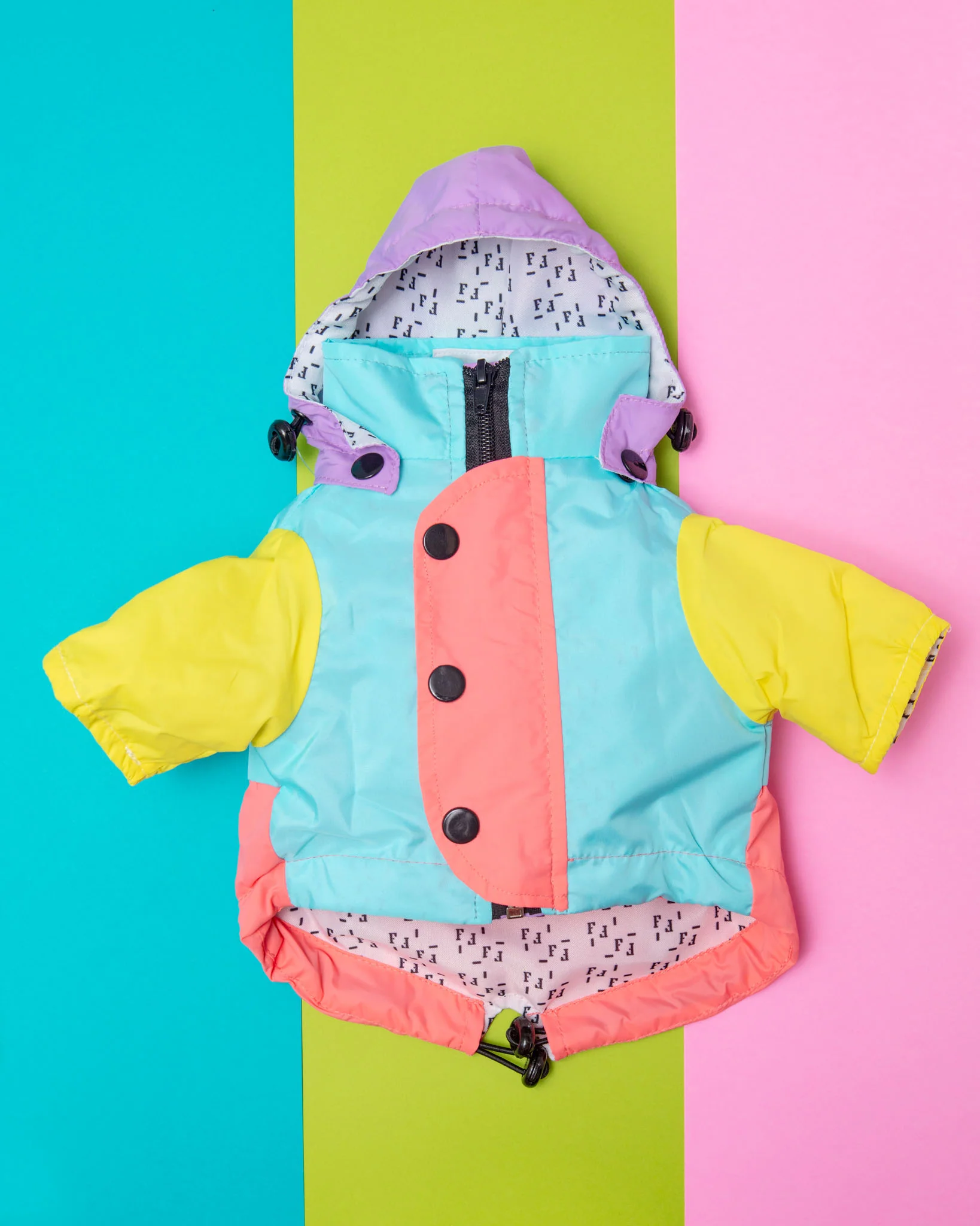 FEROZ's water-resistant jacket keeps your pet both dry and fashionable. Made from polyester with durable hardware, color-block has never been more in style!