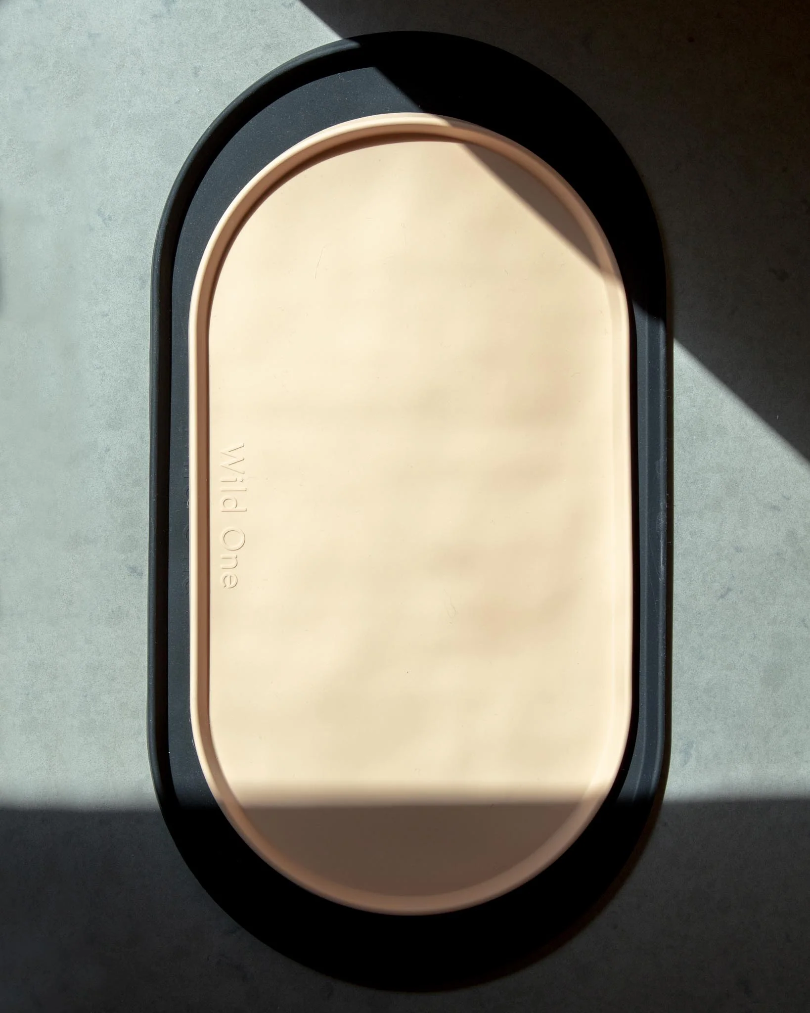 A sleek solution for minimizing mealtime mess. Made of food-safe, non-toxic, and non-slip silicone to keep food and water in place. Designed with a raised edge to contain stray kibble and splashes of water. Comes in Small and Standard which perfectly accommodates two bowls